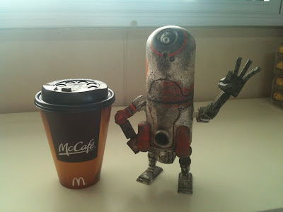 This morning before I had my breakfast a thought shot right past me haha. So heres to share My Monet Armstrong prepares coffee lol.Here's Mr M and a fresh cup of McCafe....